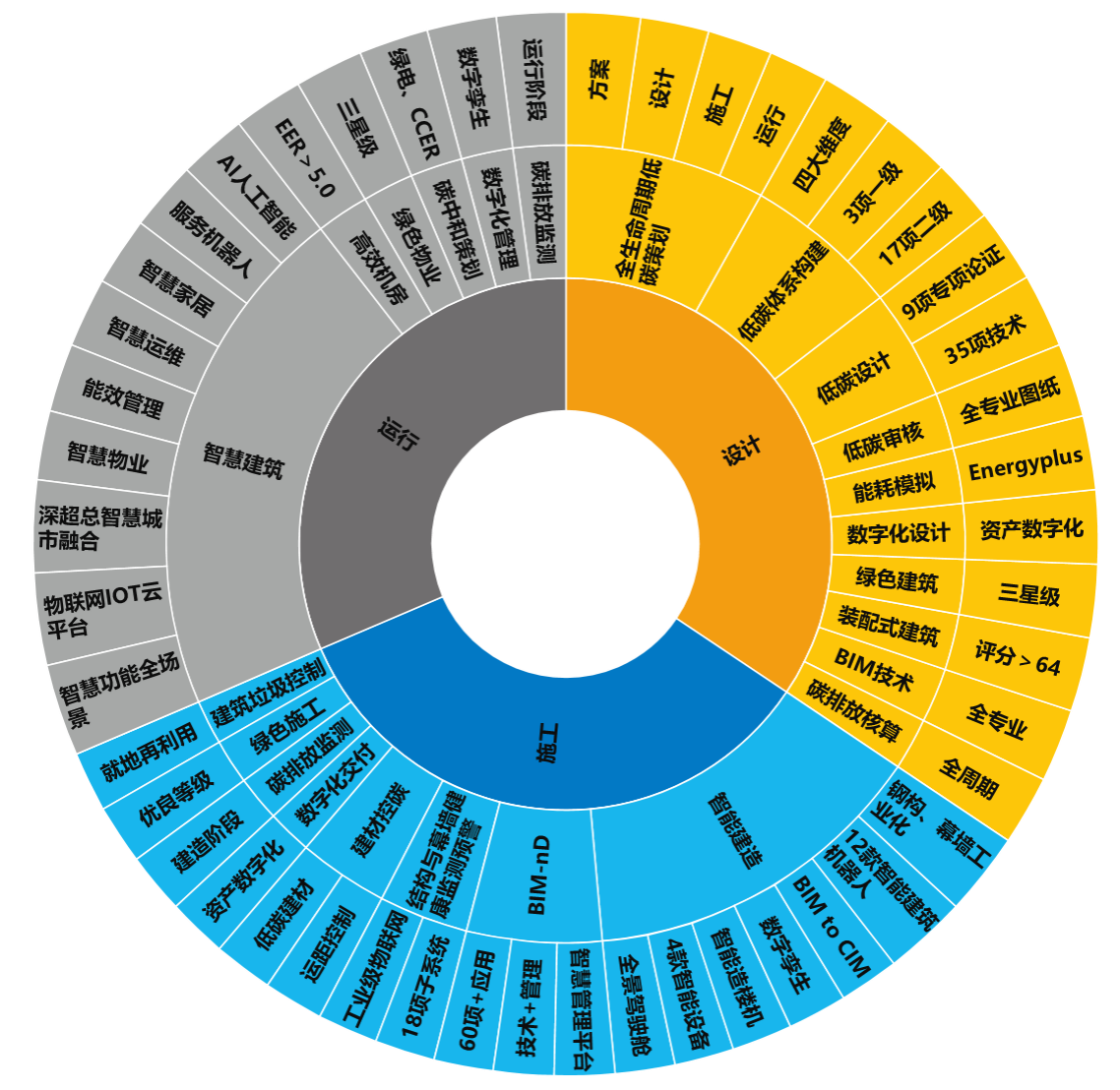 ?為實(shí)現(xiàn)真正的低碳目標(biāo),中國建研院深圳分公司幫助項(xiàng)目建設(shè)單位共同梳理主流標(biāo)準(zhǔn)體系和核心政策要求,圍繞低碳管理、低碳建造、低碳運(yùn)行、碳中和四大維度,精心打造了一套包含3項(xiàng)一級先進(jìn)指標(biāo)、17項(xiàng)二級先進(jìn)指標(biāo)的低碳減排指標(biāo)體系。該體系覆蓋超高層項(xiàng)目開發(fā)的全周期,從規(guī)劃設(shè)計(jì)時(shí)的碳排放預(yù)評估,到施工建造過程中的低碳建材選用、建造碳排放監(jiān)測,再到運(yùn)營階段的低碳運(yùn)維建議,每一個(gè)環(huán)節(jié)都有明確的量化或定性要求。