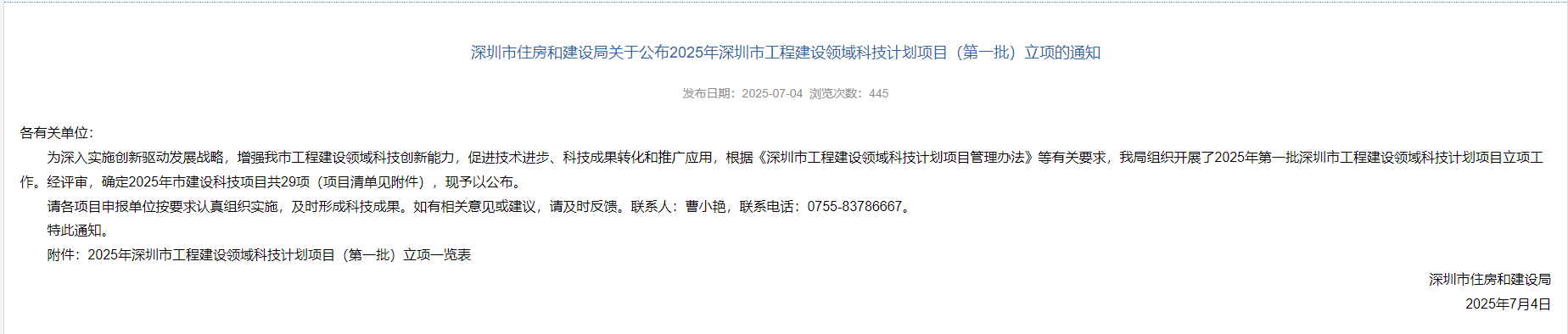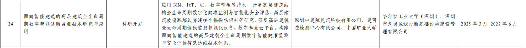 ?由公司牽頭申報的科技項目《面向智能建造的高層建筑全生命周期數(shù)字智能健康監(jiān)測技術(shù)研究與應用》,成功通過2025年深圳市工程建設領(lǐng)域科技計劃項目(第一批)評審并獲批立項。
